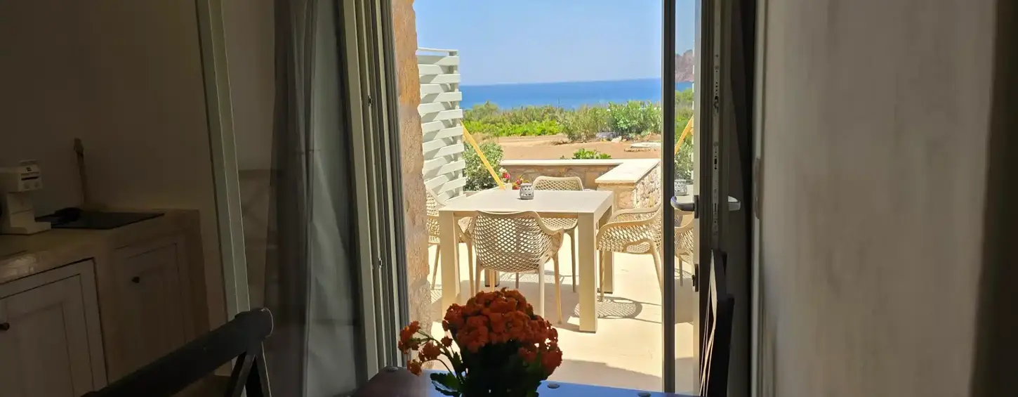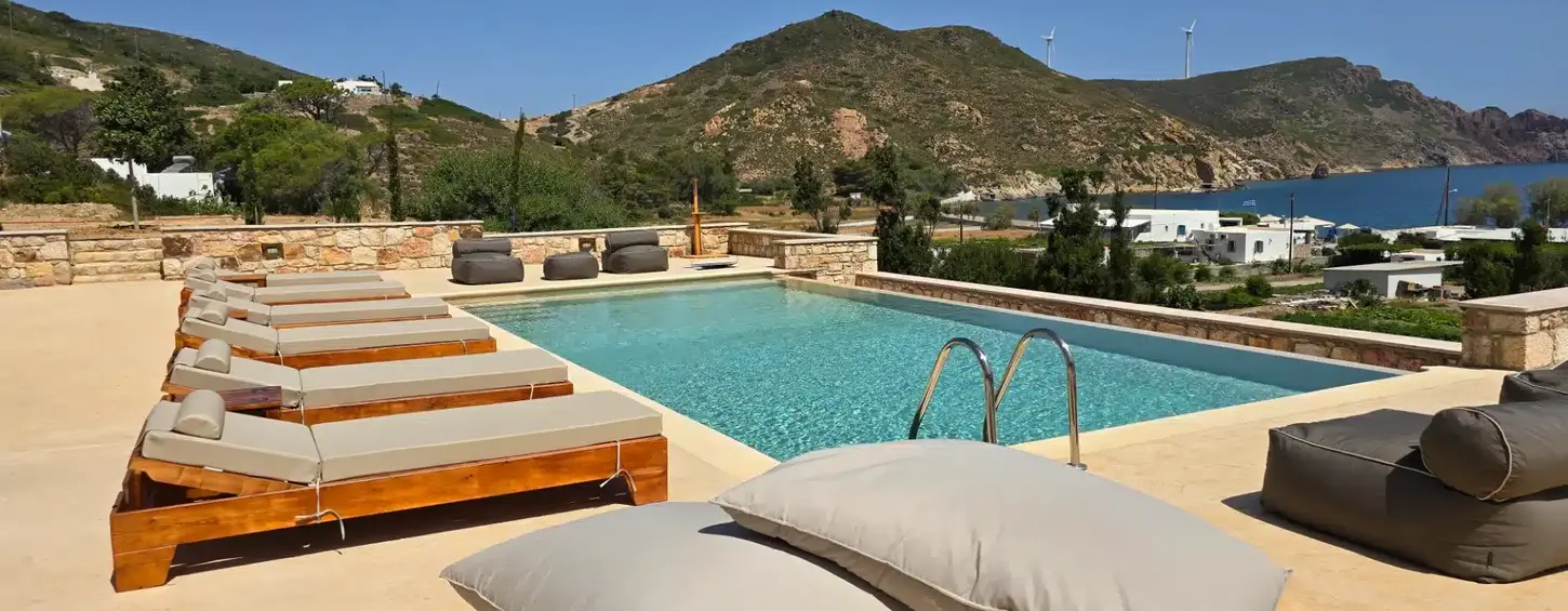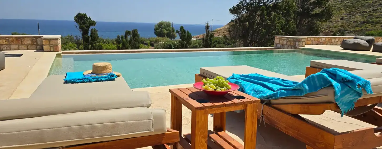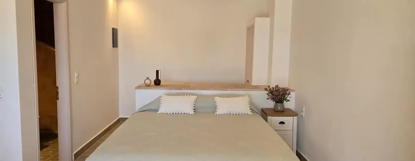 The triple studio Kima is 45 sq.m. and part of a seaside combo. Just 50 m. from the beach of Lampi, the studio Kima will offer you / promises to offer you an unforgettable stay. The unobstructed view of the sea, the quiet environment, the traditional architecture combined with modern touches and the beautiful garden create a unique scenery for a memorable vacation. It has / includes one king sized bed, one sofa bed, bathroom, fully equipped kitchen, seaview balcony, garden, parking and a pool access.