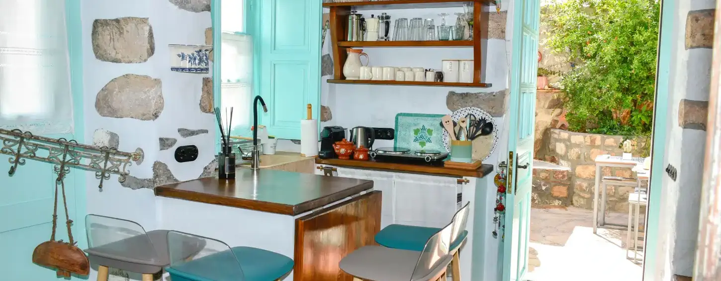 The Pyrgali is a newly built traditional house in the heart of Skala. Comfort, style, and uniqueness characterize this traditional Patinian house from every aspect. It consists of 3 levels and comfortably accommodates 4 people. The first floor and the basement make up the 2 bedrooms of the Pyrgali. The ground floor offers a charming living-dining room, bathroom. Exiting, the big surprise. A wonderful inner courtyard, with beautiful plants, dining table, and an outdoor kitchen that lacks nothing. Undoubtedly, the visitor will be thrilled with the uniqueness and style of the Pyrgali.