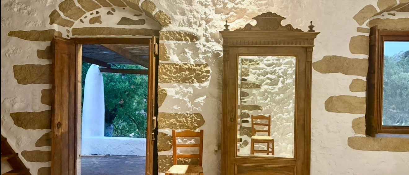 An amazing renovated house built in 1880 just one breath from the Cave or Revelation. This is one spiritual place, ideal for one person or couple who want to relax and lost in nature! In order to reach the House, it will be necessary to walk through a path for 5 minutes. It has the traditional style of Patmos houses in Chora, is fully equipped with kitchen, a living room and a bathroom.There is outdoor furniture and a barbecue. The place is full of flowers and olive trees.