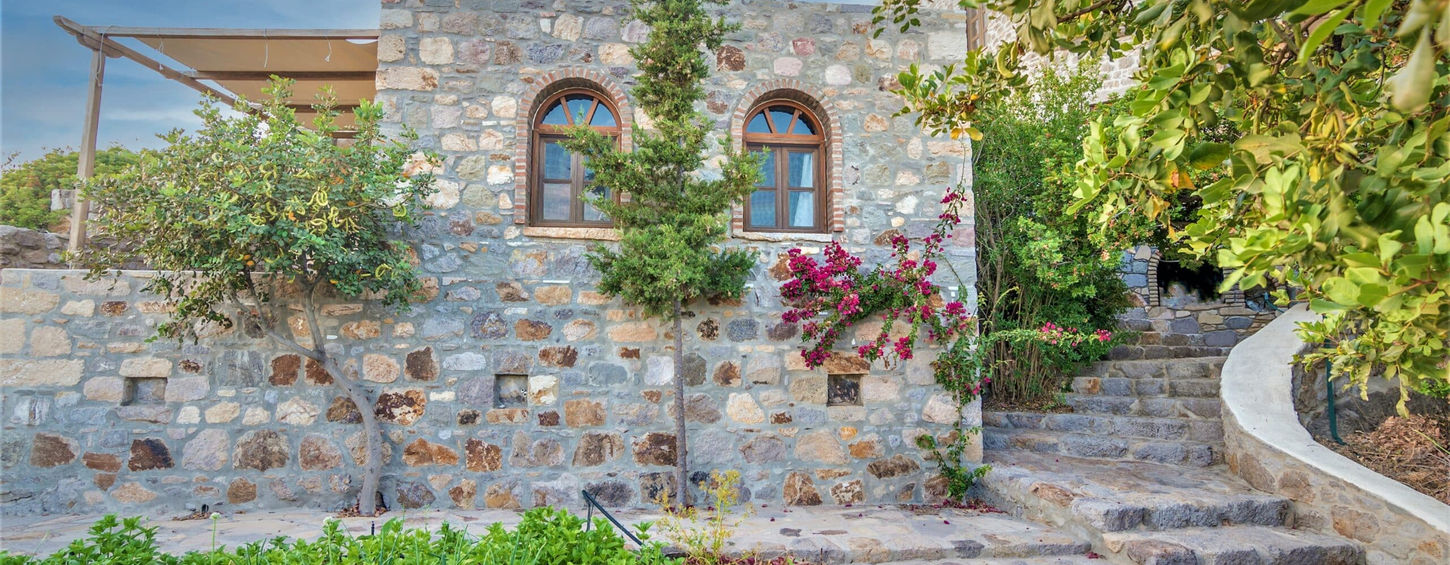 destined for guests who seek for serenity, tranquility and rest in an elegant ambiance that reflects personal care and passion. Constructed with building materials from the old mansions of Chora, Villa Margarita Studio impresses with the unique architectural design and rustic style. In this studio, prevailing white meets the earthy colors of wood, Patmian class the modernity and island color the modern amenities, in a balanced match of heterogeneous elements. The 40sm studio has a double bed, sitting-room, sofa-bed, small kitchenette, bathroom and a small veranda with views to the port of Skala while there is also direct access to the garden of the villa and the barbecue area. Parking space is available as well. If you have been looking for “Patmos exclusive villas for rent” or “where to stay in Patmos” in order to celebrate a special occasion or anniversary, or even your honeymoon in Patmos, then Blue Vista Patmos is your best choice for unique accommodation in the island!